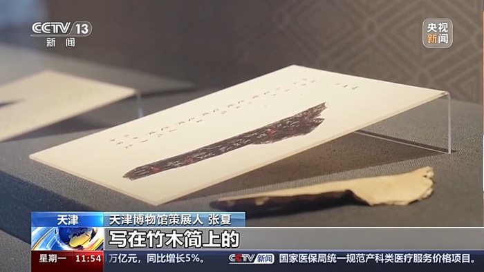 天津博物馆策展人 张夏:在铸造青铜器的时候,它是先用毛笔把这个字写在模上,再铸造出来的,这也说明当时的人们主要的书写工具是毛笔。包括一些考古发掘现场的朱书、墨书都可以推断,当时主要的文字是用毛笔写在竹木简上的,只是都没有保存下来。