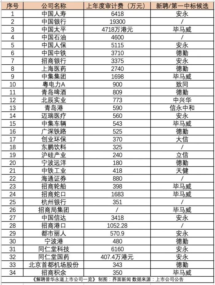 30余家上市公司解聘普华永道,安永捡漏最积极