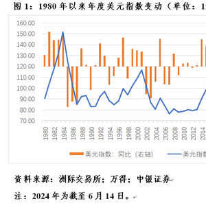 综上,预计今年底,随着美国选情逐渐明朗化,若特朗普有机会再度当选,不排除在弱美元政策的预期下,美元指数会有一波加速下行。但是,鉴于美国当前的通胀环境,且经贸摩擦有可能加剧通胀韧性和市场避险情绪,美元指数未必会如政府和市场所愿大幅走弱。当然,如果特朗普第二个任期任性而为,迫使美联储不得不将高利率维持更长时间,最终导致美国经济“硬着陆”,美联储也有机会大幅降息,进而让美元指数趋势性走弱。但如果遭遇经济滞胀,美联储则要面临稳增长还是稳物价的“两难选择”。