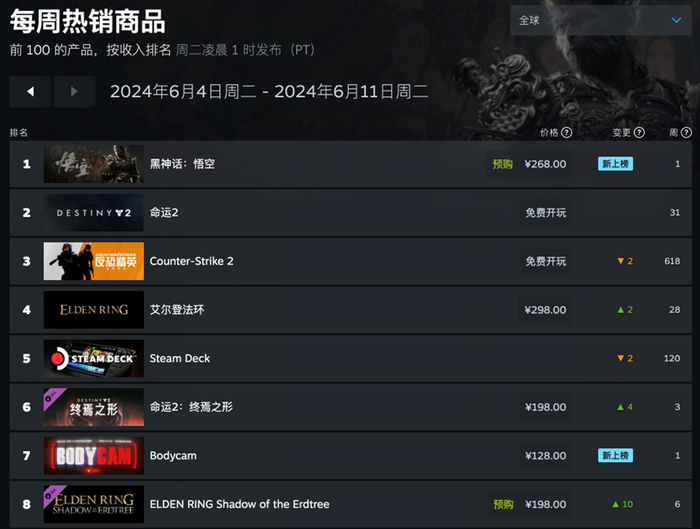 虽然其普通版本售价268元,数字豪华版售价达到328元,但销售仍然火爆,开启预售后很快便登上Steam全球畅销榜榜首。根据Steam平台最新数据,该游戏上线首周收入高居该平台周度(6月4日至11日)榜首。