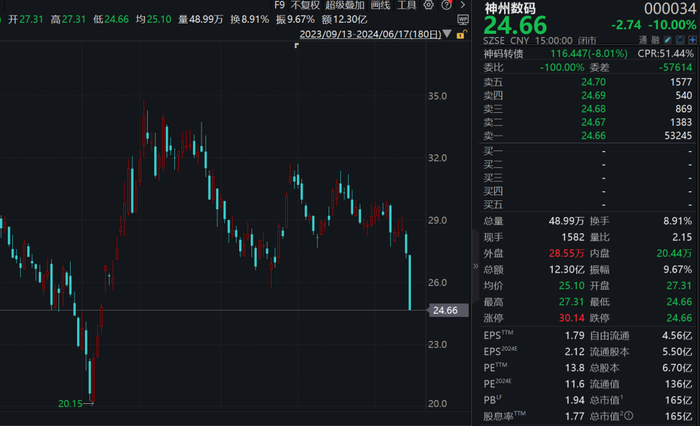 6月17日,一则“华为将收回部分昇腾整机业务”的消息,引发华为概念股、A股公司神州数码(000034)股价跌停。