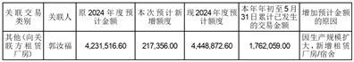 2.与关联方郭汝福本次新增日常关联交易总额为2,173,560元,其中2024年度预计额度增加217,356.00元;