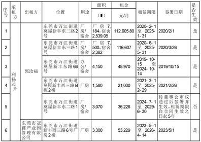 4、公司向郭汝福承租的“东莞市万江街道莫屋新丰东二路1号”房屋的租赁合同(序号5)为本次拟新增关联交易。