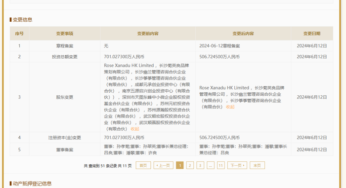 此外,今年2月,股东成员中新增一家香港公司Rose Xanadu HK Limited,其持股比例1.38%。股东退出的同时,茶颜悦色的注册资本由约701万元减至约506.7万元。
