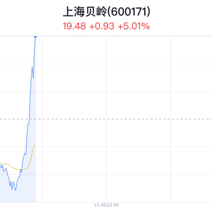 06月18日,上海贝岭(600171)股价大幅上涨,截至10点23分,上海贝岭上涨5.01%,报19.48元/股,成交14.33亿元,换手率11.06%,振幅9.60%。