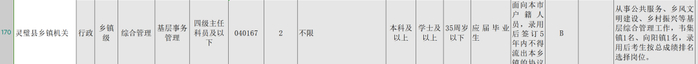 招考信息显示,代码为040167的职位共招聘2人,灵璧县下辖的韦集镇和向阳镇各招录一名,录用后考生按总成绩排名选择岗位,将从事公共服务、乡风文明建设、乡村振兴等基层综合管理工作。记者注意到,报考要求中明确该岗位面向本市户籍人员,录用后需签订5年不得流出本乡镇的协议。