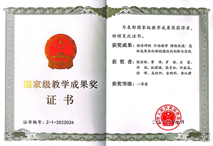 去年,教育部公布了2022年国家级教学成果奖获奖成果名单。台州职业技术学院成果《标准研制 行动教学 持续改进: 高职成果导向课程建设的创新与实践》喜获国家级教学成果奖一等奖。