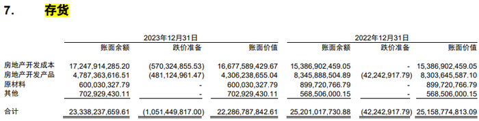 2023年,中建七局对房地产开发成本计提了5.7亿元的跌价准备,对房地产开发产品计提了4.81亿元的跌价准备,合计10.51亿元,而2022年仅对房地产开发产品计提了0.42亿元的跌价准备。