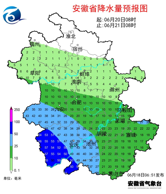 值得一提的是,未来十天我省累计雨量呈现南北差异大的特点,预计淮北地区北部20~40毫米;淮北地区南部和沿淮地区30~70毫米,局部80~100毫米;江淮之间北部100~200毫米,局部200~250毫米;大别山区和沿江江南250~300毫米,局部300~400毫米;其他地区180~250毫米,局部250~300毫米。沿淮淮北仍有高温天气,淮河以南高温缓和。25日前沿淮淮北大部以35~38℃的高温天气为主,其他地区最高气温普遍在34℃以下。