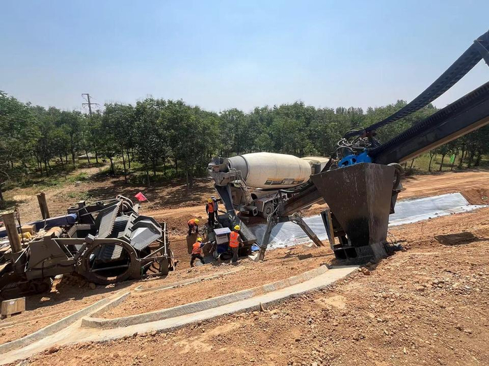 降低施工安全风险之外,“路智纵横”道路附属智能建造体系的流态固化土智能拌合装备还能实现绿色施工。它能解决线性工程野外作业场景流态固化土生产应用难题。装备周转便利、计量精确,不需要其他机械配合,每小时可生产流态固化土15方。装备能实现工程现场弃土、弃渣的原位利用,开创了路域高价值资源一站式原位利用的新模式。