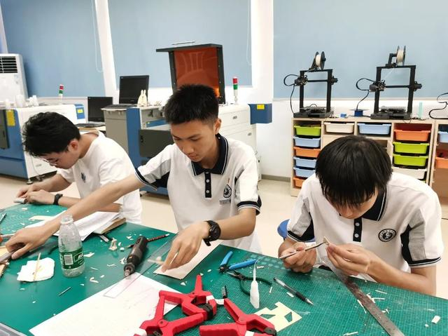 面对严苛的线下赛赛题“在瓶口直径为2.5cm的塑料瓶中,利用木片搭建一个微型未来飞行器模型”,崇明中学三位同学利用学习的空余时间,在创新实验室精心准备,把不可能变为可能。在学校沈煜老师的悉心指导下,不断迭代模型设计,优化制作工艺,对细节精益求精,将工匠精神和团队合作精神体现得淋漓尽致。