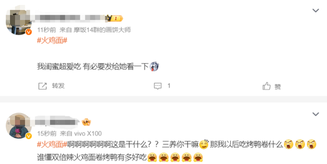 三养“火鸡面”即“超辣鸡肉味拌面”,该产品以辣度为营销重点,近年来频频出现在韩国综艺和博主的“吃播”中,成了年轻消费群体关注的“网红”产品,还有网友表示“吃上瘾”了。