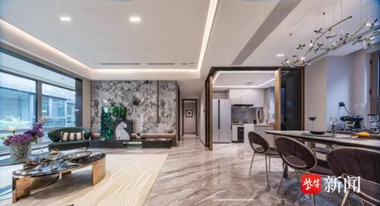 简一大理石地砖、冷翡翠岩板、悬浮吊顶。