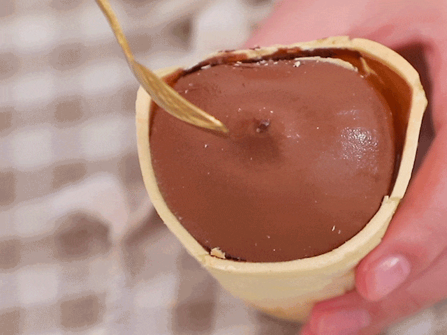 华夫筒内满满的都是牛乳冰淇淋,真的是太实在了!