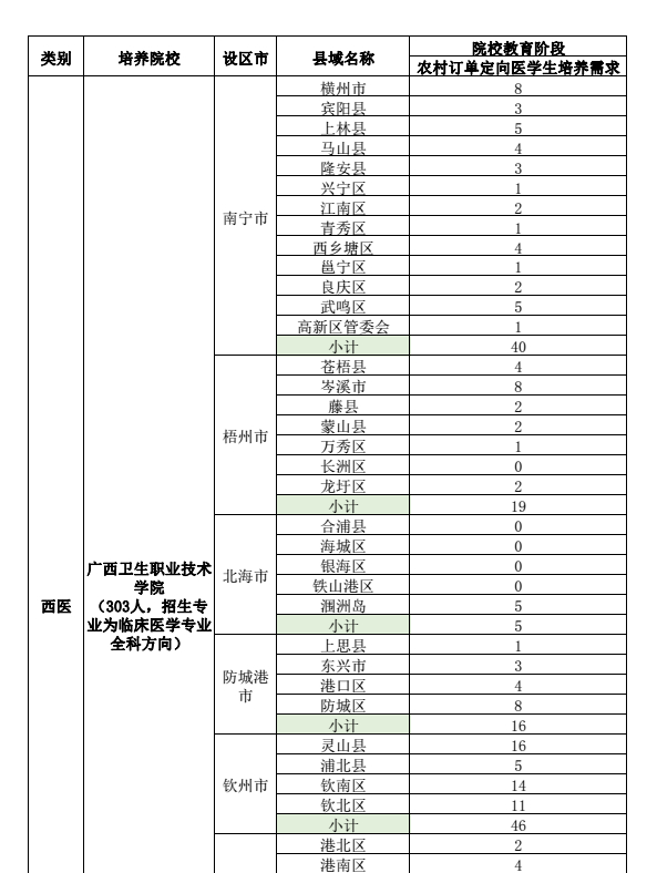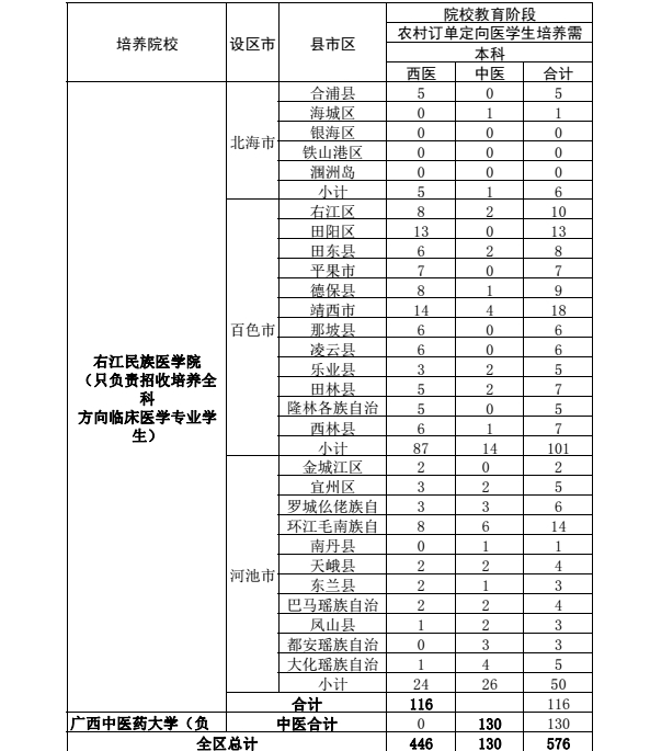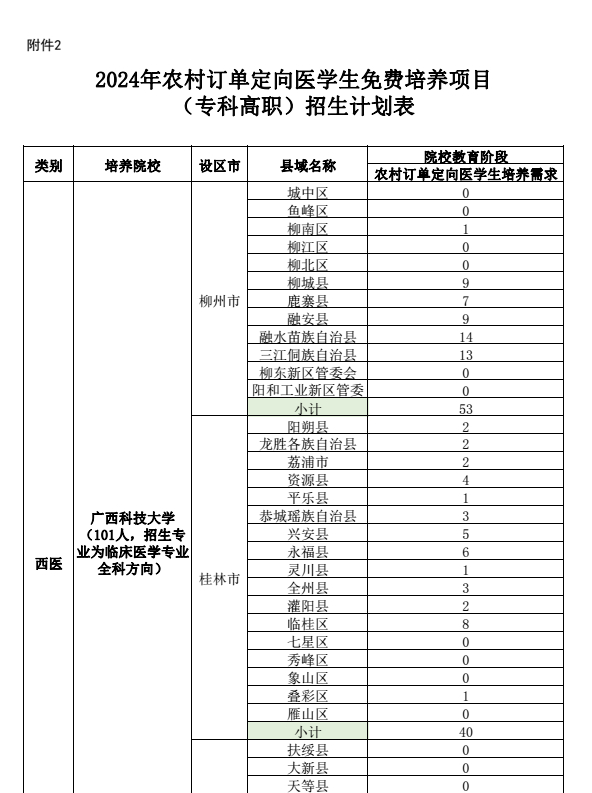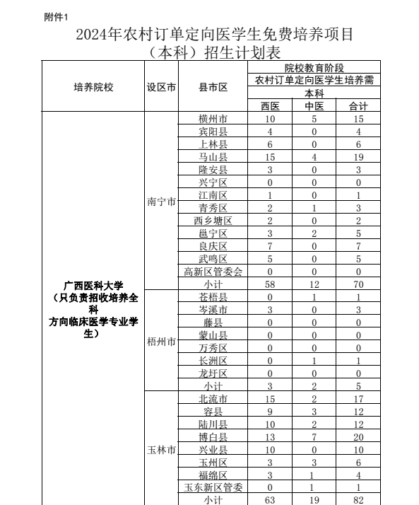 近日,广西卫生健康委发布通知,宣布2024年在广西继续实施定向医学生免费培养项目,面向全区招生。2024年全区计划招收农村订单定向免费医学生1179人,其中本科576人、专科(高职)603人。