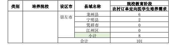 定向医学生免费培养项目分5年制本科和3年制专科(高职)两种,培养专业主要是西医临床医学专业和中医(中医学或针灸推拿)专业。