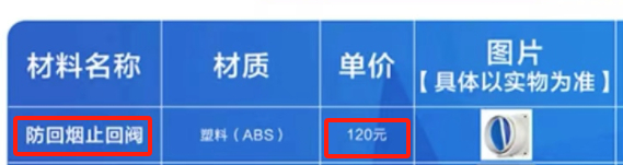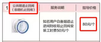 在另一家电商平台记者发现,一家名为“名气大家电官方旗舰店”同样的安装附件收费却不相同。店内老板油烟机名气2305A的安装附件收费标准表格中显示,公共烟道止回阀(非烟机止回阀),指导价格80元/个,用户自备烟道止回阀则收取安装工时费50元/个。但是,老板抽吸油烟机名气1305A的安装附件收费标准中,防回烟止回阀的指导价格则为每个120元。