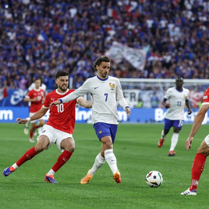 ▲当地时间2024年6月17日,法国队球员格里兹曼(前中)在欧洲杯比赛中传球。图/新华社