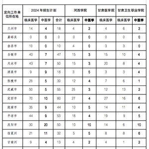 1.2024年甘肃省村医定向医学生分培养院校和定向服务地招生计划