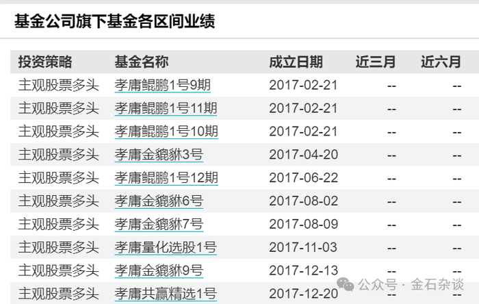 这家公司特别喜欢以貔貅、鲲鹏等名字命名,仅孝庸鲲鹏一号就衍生出1-12期共计13只鲲鹏系列产品。对于孝庸这个名字,不少网友调侃道:这名字给我笑拥了...