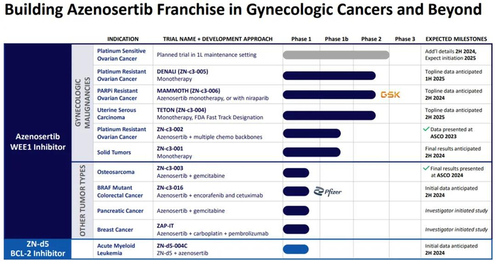 Zentali围绕azenosertib开展了数10项临床研究,部分临床研究是与辉瑞和GSK合作。好在此次仅暂停了3项试验,另外的几项还在正常推进。