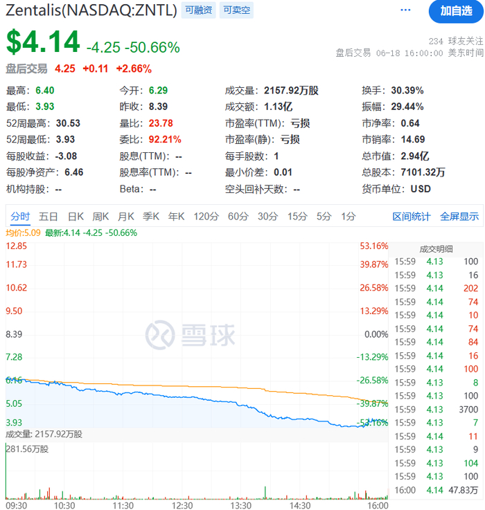 这一消息导致Zentali股价大跌50.66%。