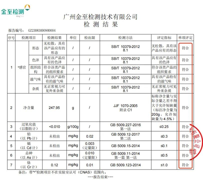 质检报告也给大家要来了,细心的朋友点开看大图: