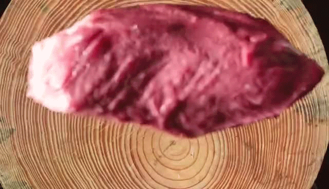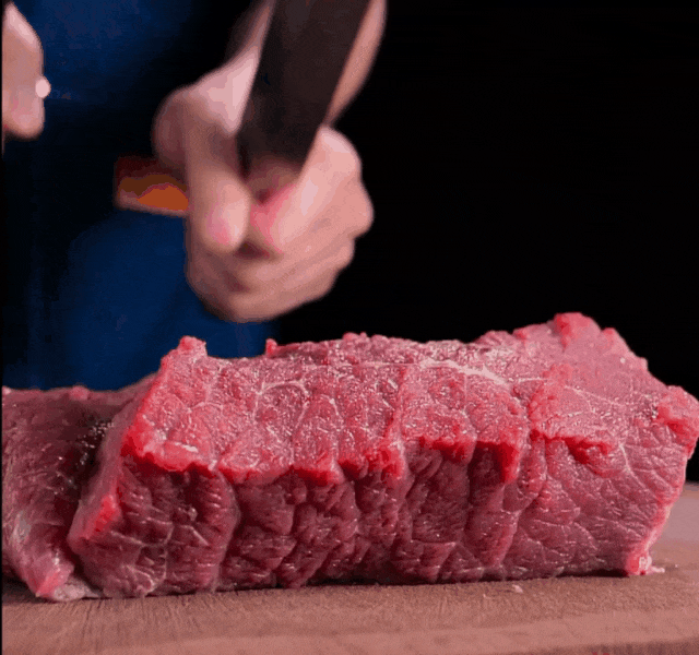 内里筋肉拉丝,能看到层层不同纹理,里面的小气孔裹满了肉汁,一口下去,浓香满口,肉汁四溢!
