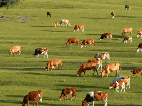 黄牛们享受着天然的植被、饮用着小溪水,肉质和心情一样美好~