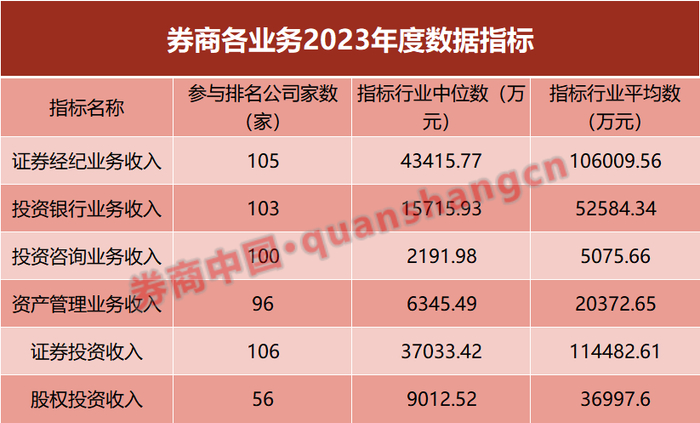 券商中国记者从券商了解到,日前,券商2023年经营业绩各项细分指标数据出炉。