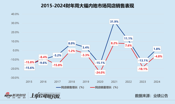 内地市场同店销量一降再降 金价飙升毛利率创近15年新低