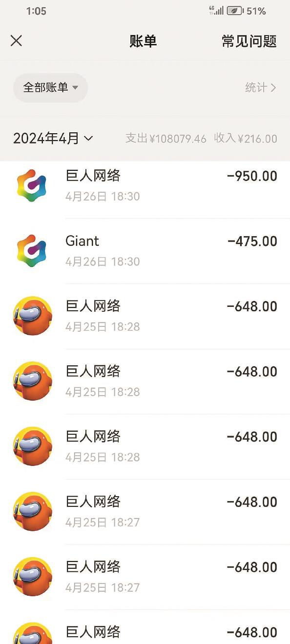今年5月以来,马女士持续与“太空杀”运营方上海巨人网络科技有限公司交涉,但始终没有明确解决方案。她认为,平台在新账号注册环节就存在审核漏洞,“女儿拿我的身份证去注册游戏,运营方难道不进行人脸识别认证吗?这很容易发生家长身份被孩子盗用充值的情况。”