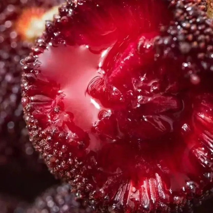 将一颗颗新鲜的杨梅丢进嘴里,咬开的一瞬间汁水就迸满整个口腔,甘冽鲜甜,同时又有一丝俏皮的甜味萦绕上了舌尖,这甜很轻盈,若即若离。