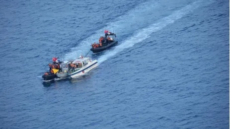 《环球时报》记者获取的现场影像也显示,面对执意顽抗的菲军船艇,中国海警出动橡皮艇和冲锋舟以前后“夹击”的方式,强制驱离菲军的运补小艇。此外,中国海警执法人员还登临菲军的运补硬壳充气艇开展检查工作,并在菲方小艇上搜出防弹衣等物品。部分菲方人员也配合检查。