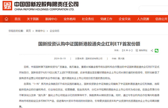 【金融界·慧眼识基金】“国家队”重磅出手!中证国新港股通央企红利ETF特色:“港股+央企+红利”三大热门概念叠加