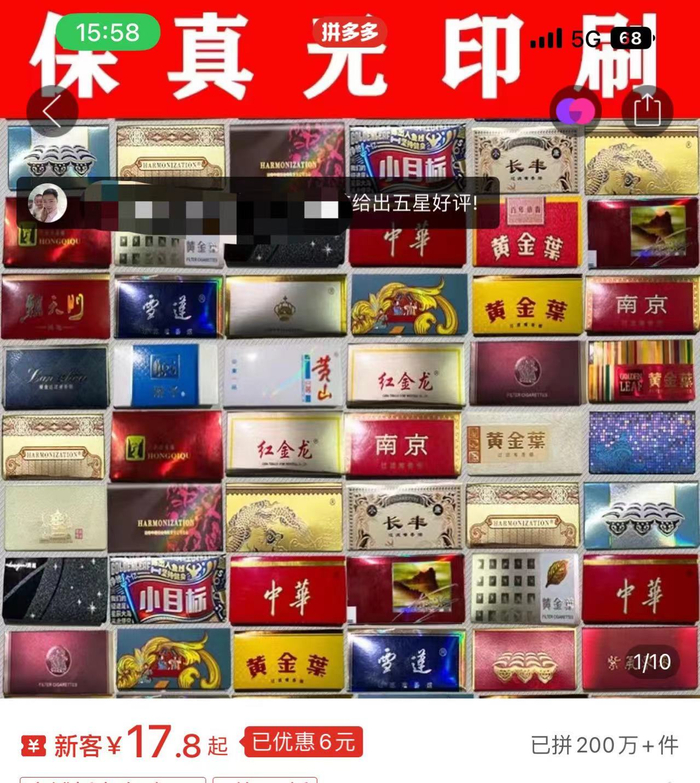 当贝壳财经记者表示价格太低时,对方称自己盈利空间也不大,“毕竟收到货时要筛选掉破损的烟盒,还要杀菌消毒后才能上架发货。一番折腾下来没啥利润,远不如卖假的挣得多。”