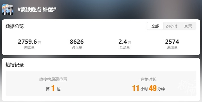 网友发帖称“高铁晚点有补偿”?12306回应
