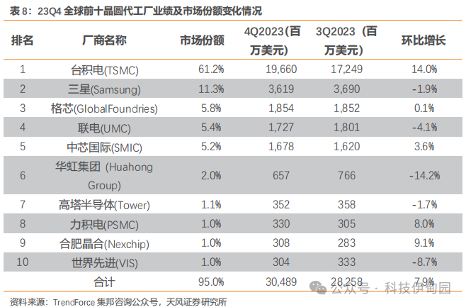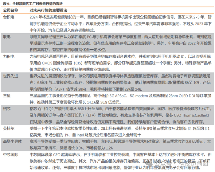 5.2. 代工:先进制程订单持续增长,成熟制程产能利用率低迷,终端需求整体处于恢复阶段