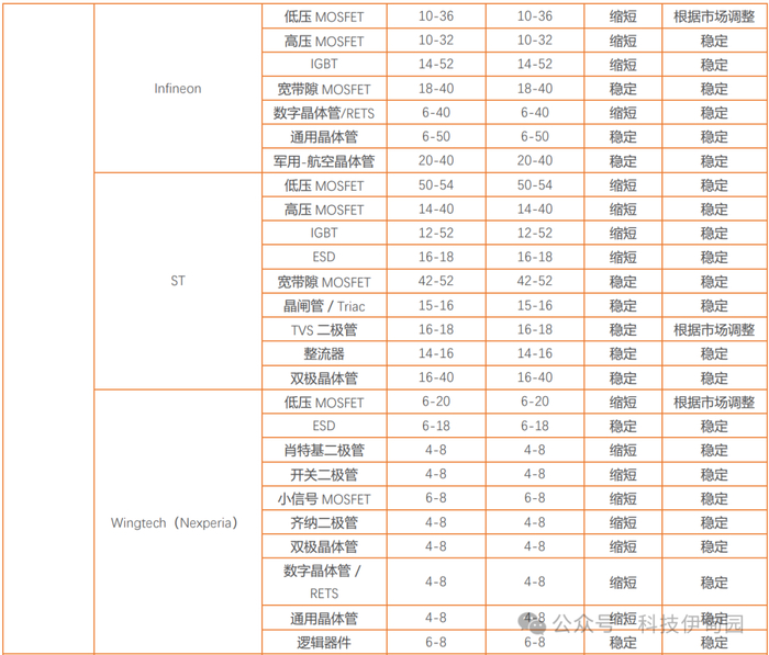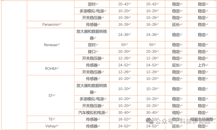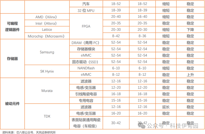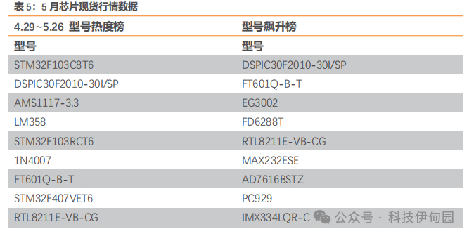4. 5月芯片交期及库存:全球芯片交期持续稳定,部分产品交期在需求复苏下有所延长