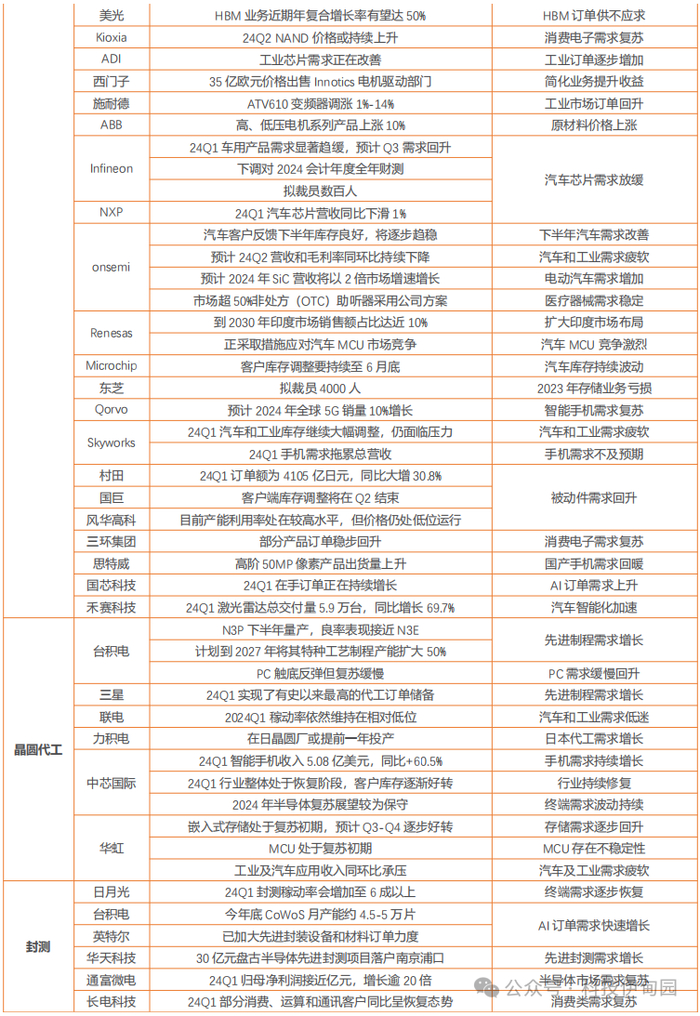 供给端:材料端库存去化低于预期,代工需求分化持续,汽车芯片需求增长疲软,存储行情持续回升。
