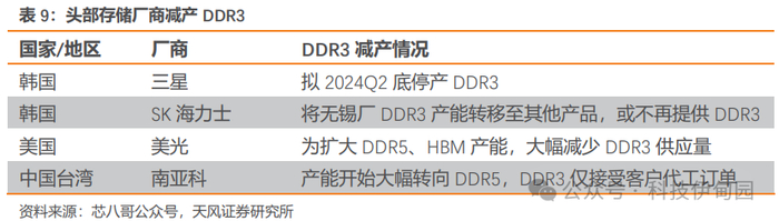值得关注的是,近期三星、SK海力士正加大对HBM、DDR5 等高端产品投入,计划逐步退出DDR3等市场。作为DDR3主要供应商,产能调整对于终端供应及价格影响较大。