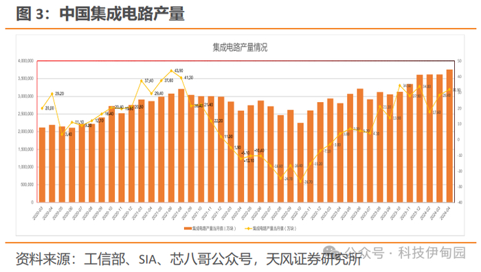 半导体产业宏观数据:根据SIA数据,4月全球半导体行业销售额超461亿美元,市场持续回升。Q1季度销售额有所下滑,反映了正常的季节性趋势。预计今年剩余时间内市场将继续增长,随着周期性技术复苏扩大到其他电子终端市场,将支持半导体进入下一轮上升周期,从今年下半年持续到2025年。