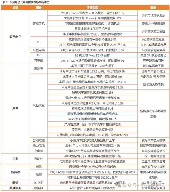 需求端:终端需求延续分化走势,消费类需求呈弱势复苏,汽车竞争激烈下供应链波动明显,关注工业、新能源市场变化。