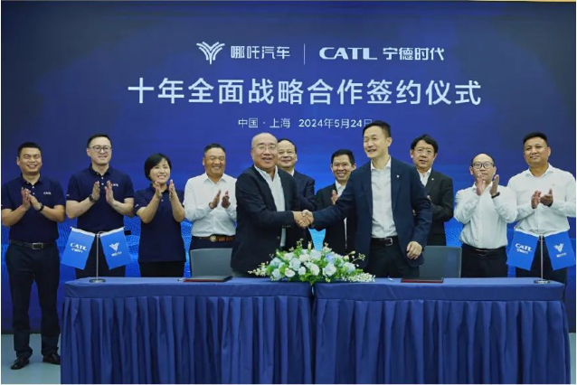 5月24日,哪吒汽车与宁德时代签署十年全面战略合作协议。根据协议,2025年至2034年,哪吒汽车将宁德时代作为汽车动力电池首选合作伙伴,宁德时代为哪吒汽车提供具有市场竞争力的动力电池产品和服务保障。