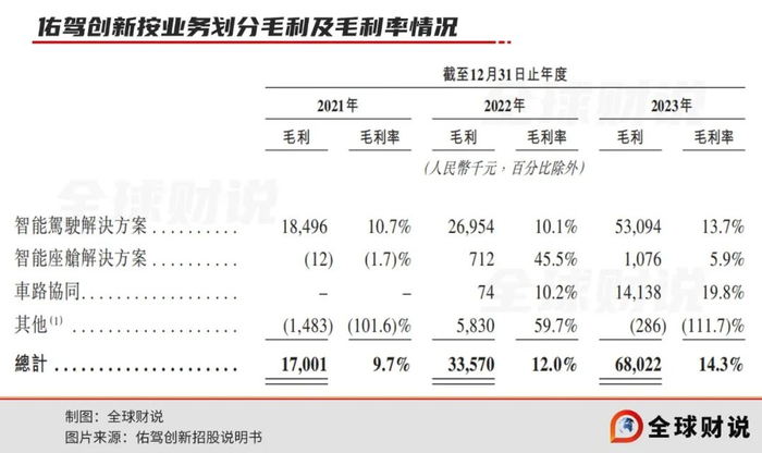 其中智能驾驶解决方案为主要收入来源,报告期内分别占总收入的98.8%、95.7%、81.1%,但毛利率分别低至10.7%、10.1%、13.7%。