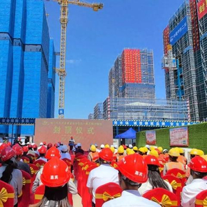 封顶仪式上,伴随着礼炮鸣响,装有混凝土的吊机缓缓升至顶楼,有序完成浇筑,主体结构封顶完成。不少村民代表也应邀前来见证这一重要时刻。金胜村村民宋大梅笑着感慨道:“看着这些大楼从无到有,我们心里很开心。”