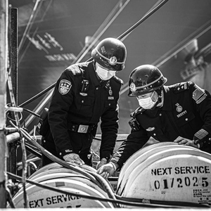 2024年4月11日,营口鲅鱼圈边检站服务保障载运化肥外籍船舶通关。边检总站供图