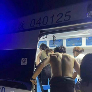 事发后,金先生一行人被送上救护车。图片由受访者提供