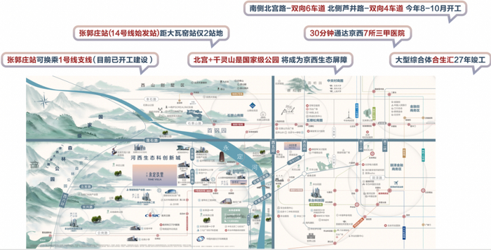 今年年初,丰台区在年初举行的2024年重大项目开工暨河西生态科创新城建设启动仪式,宣布46项重大工程集中开工,其中包括地铁1号线支线启动建设,以及北京园博园合生汇等涉及交通、教育、医疗方面的建设计划。这些重大配套设施的逐步落实,为河西的发展注入了巨大的潜力。