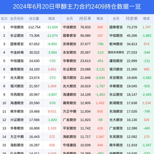 新浪期货 根据交易所数据,截至6月20日15点收盘主力合约甲醇2409,涨跌-0.08%,成交量47.89万,持仓数据显示前20席位呈现净空,差额头寸为3050。